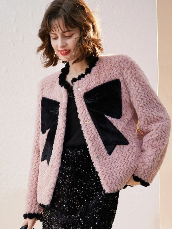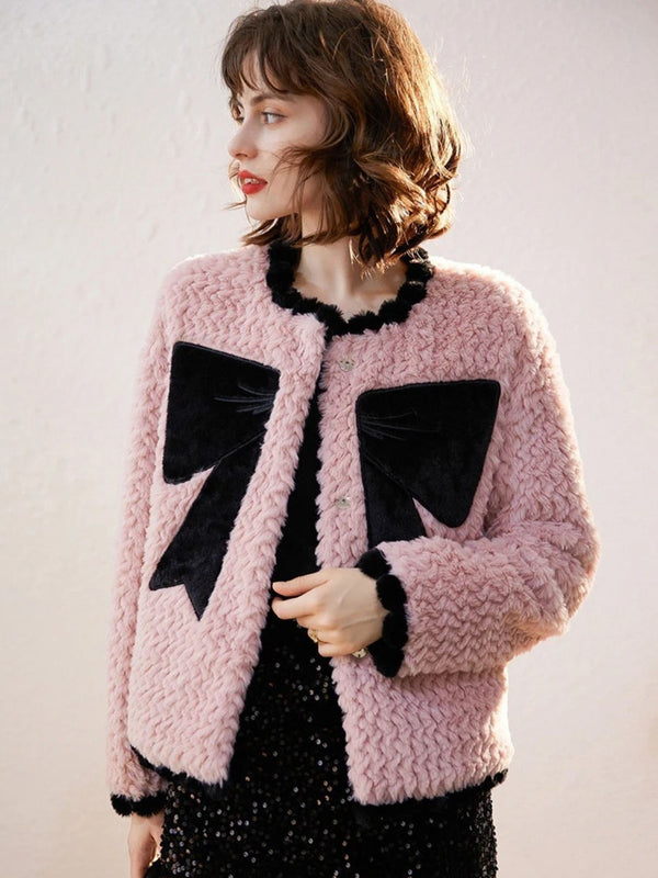 Coat Women Bow-Accent Faux-Fur Full-Length