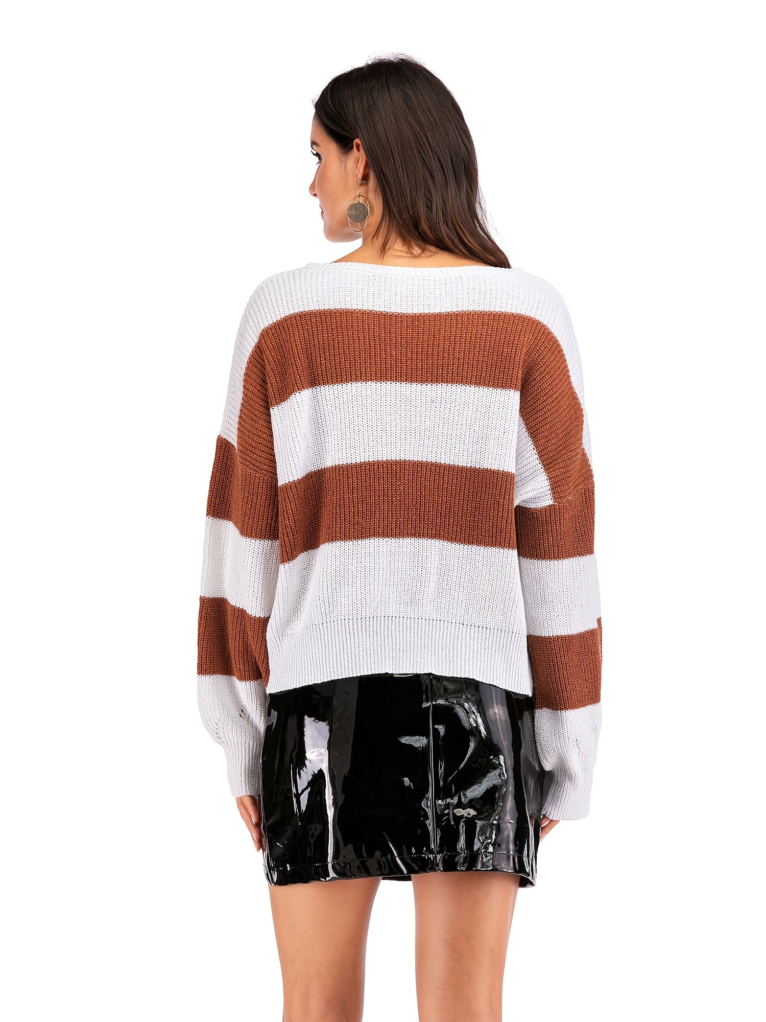 Sweater Women Oversized Off-Shoulder Stripe Pattern